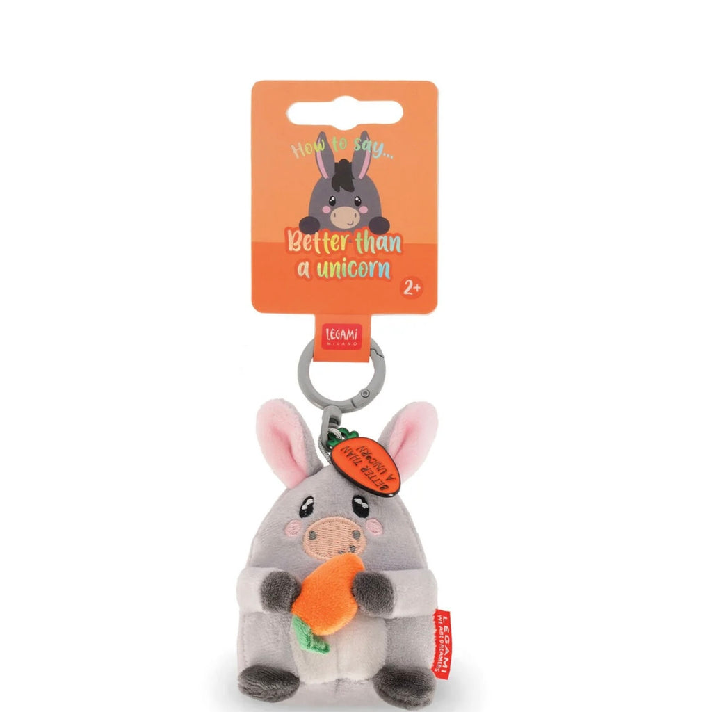 Plus qu’un simple accessoire, ce porte-clés peluche en forme d’Âne garde vos clés… et un petit mot personnel. Grâce à son mousqueton en zinc, il s’accroche partout facilement et s’accompagne d’une breloque émaillée gravée d’un message tendre. À collectionner parmi 9 modèles adorables, pour soi ou à offrir.