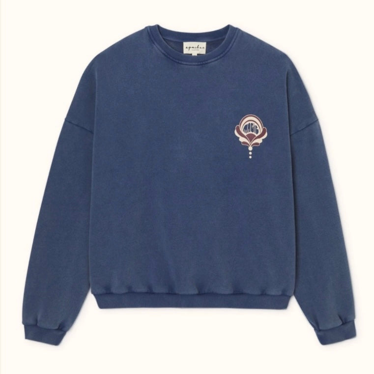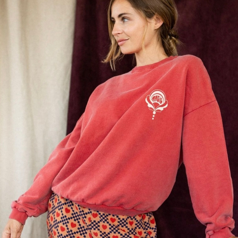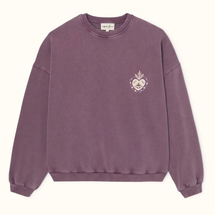 Le sweatshirt RIYA en coton molletonné séduit par son effet patiné exclusif. Sa coupe ample, son col rond et ses finitions en bord-côte assurent un confort décontracté, tandis que son imprimé graphique sur la poitrine signe une touche moderne et tendance.
