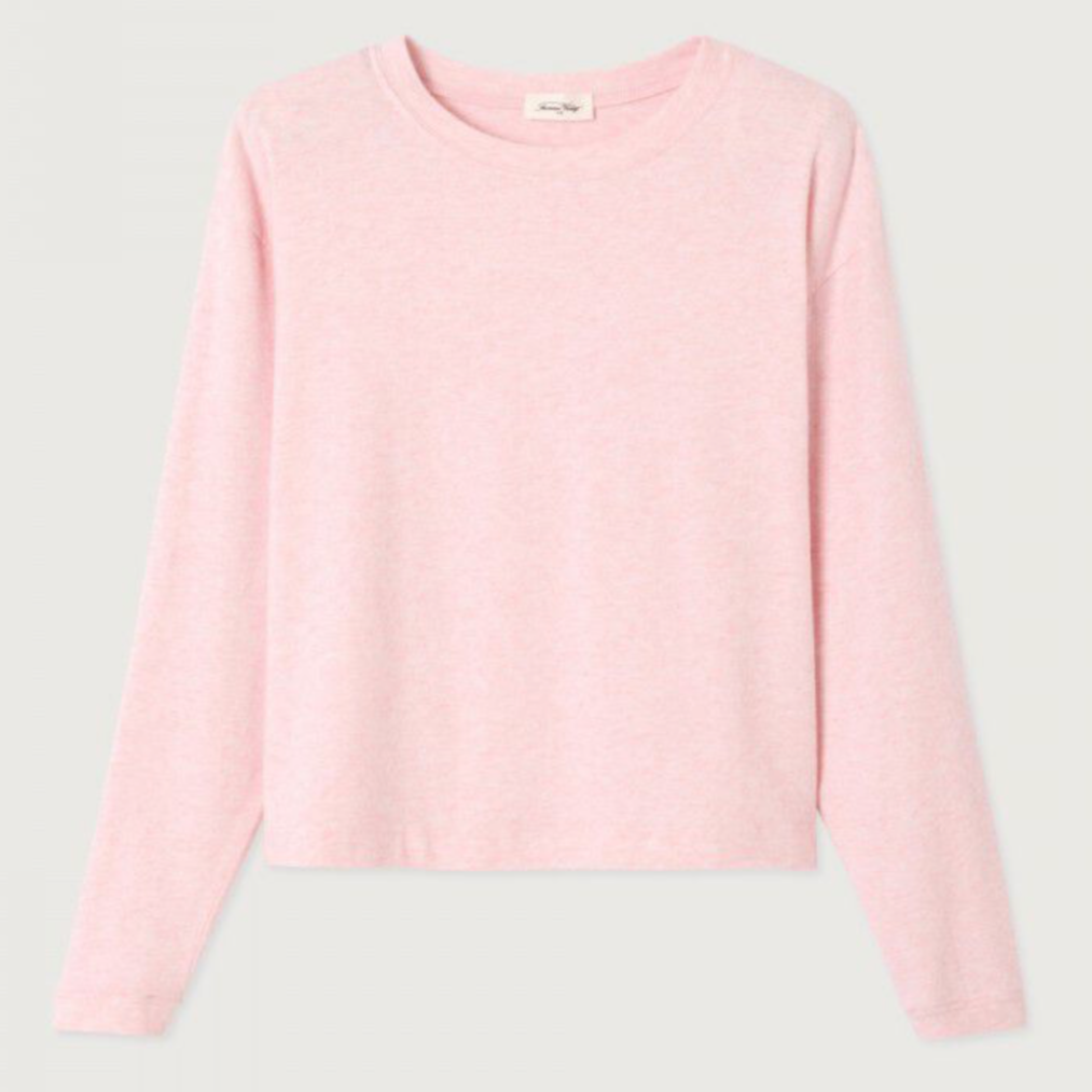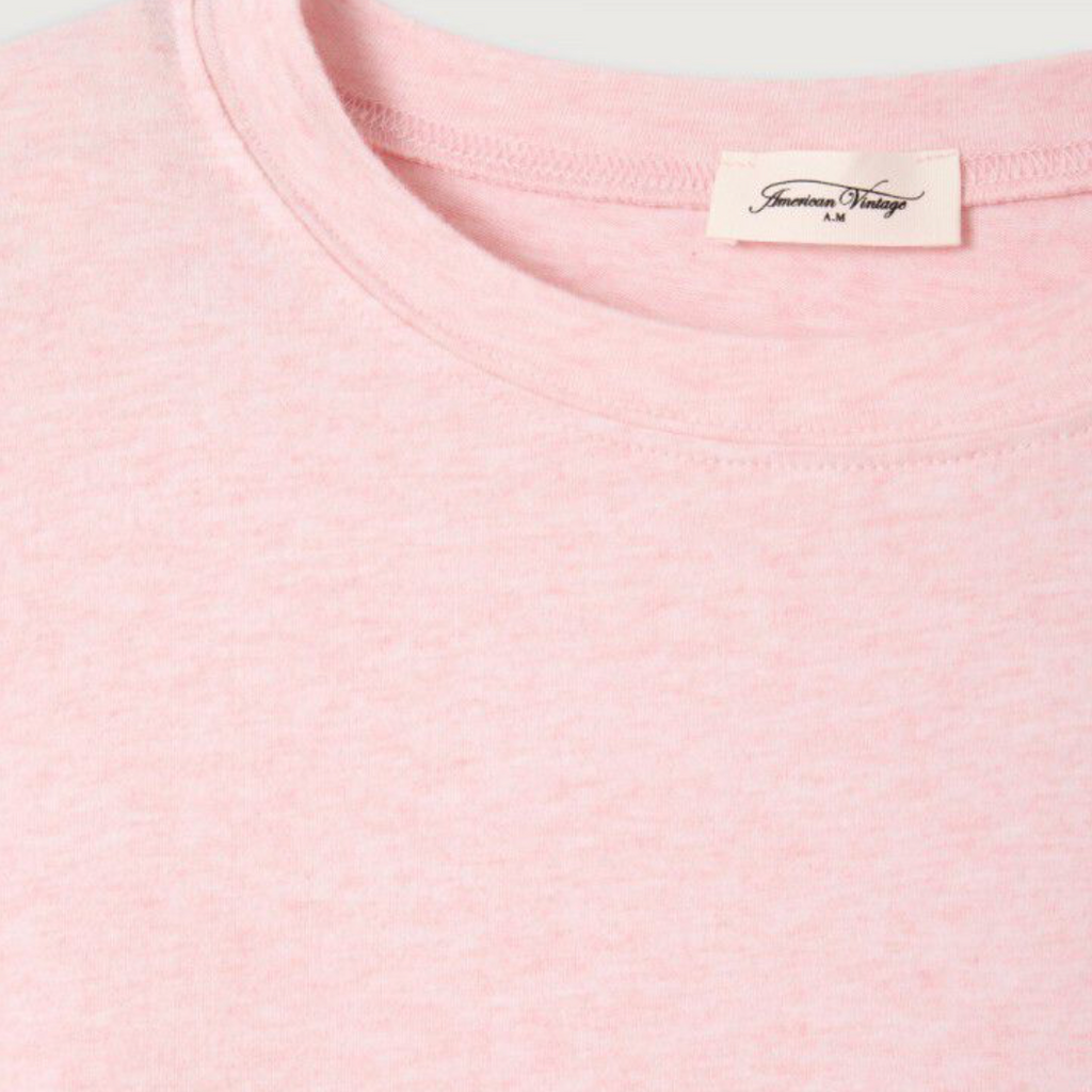 T-shirt vintage américain en Glaçage chiné, au style rétro et à la coupe droite, confectionné dans un tissu doux et légèrement délavé. Un essentiel à l’allure authentique et intemporelle !🩷