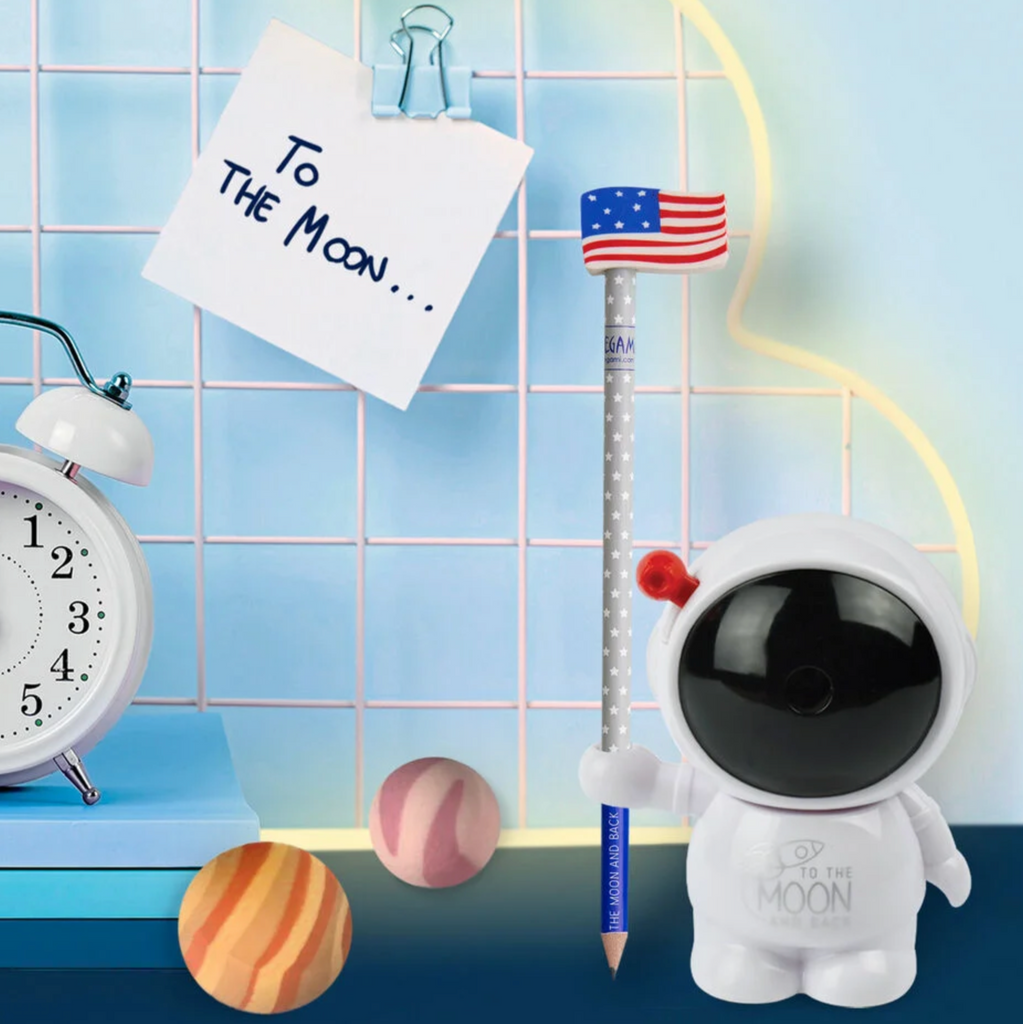 Partez en mission devoirs avec le taille-crayon à manivelle Astronaute de Legami, un outil pratique venu tout droit de l’espace pour des crayons toujours au top !