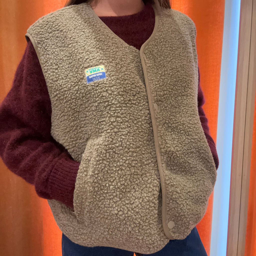 La veste sans manches Hoktown pour femme, en tissu recyclé effet shearling, allie chaleur, confort et style.